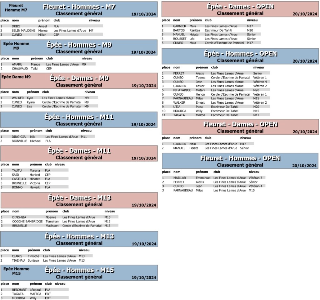 [Résultats] Compétition individuel du 19 et 20 Octobre 2024