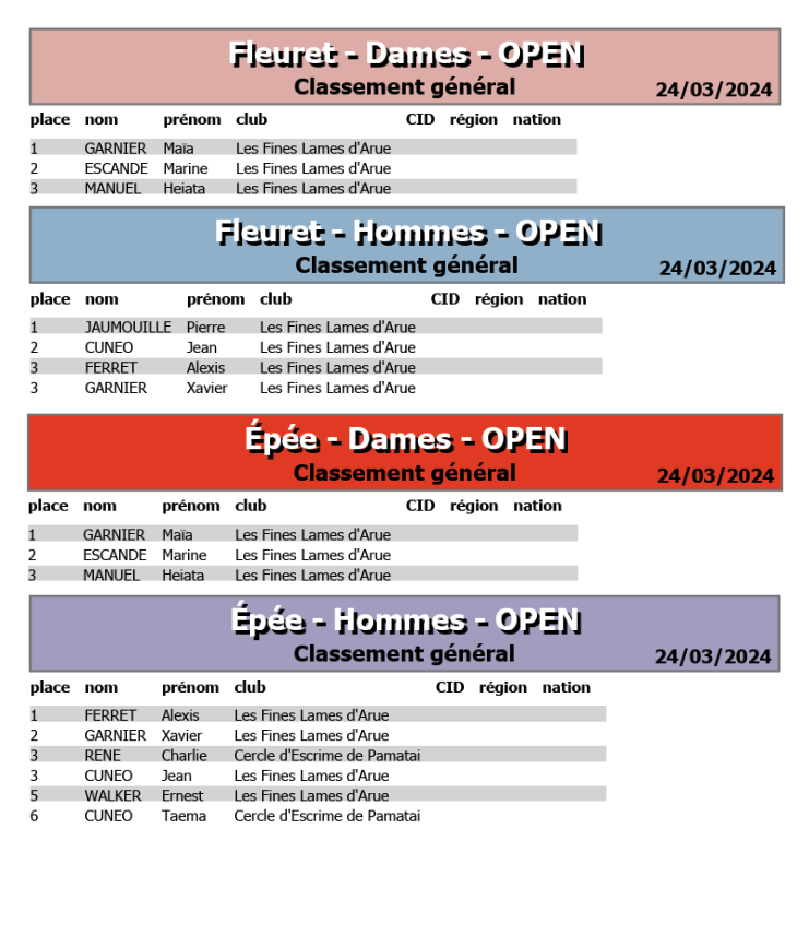 Début de sa saison sportive la FEM organise une première compétition Inédite avec la présence de 6 clubs dans la salle d’armes de Arue.
