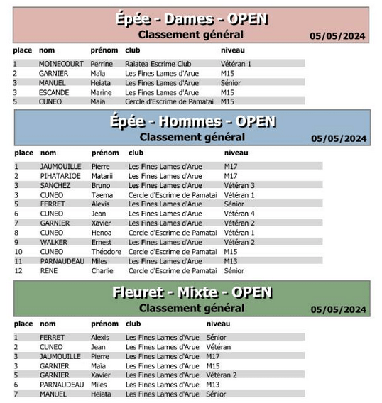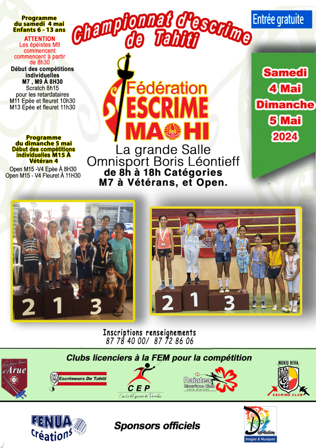 Fin de la saison 2023/2024 pour la jeune fédération d’escrime MA’OHI. Très belle et enthousiaste rencontre des différents clubs de la FEM. Contrastant avec les précédentes compétitions de la fédération Tahitienne d’escrime où les participants étaient quasi absents, certainement du au peu d’adhérents.