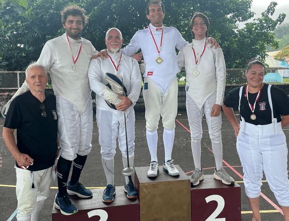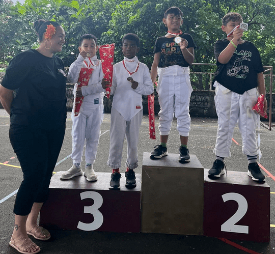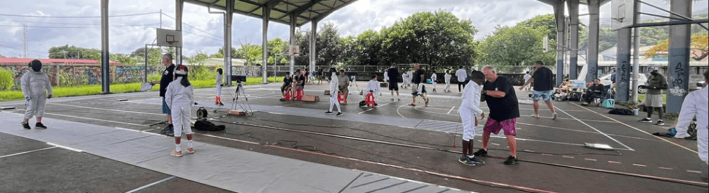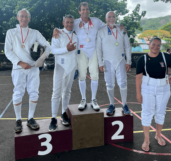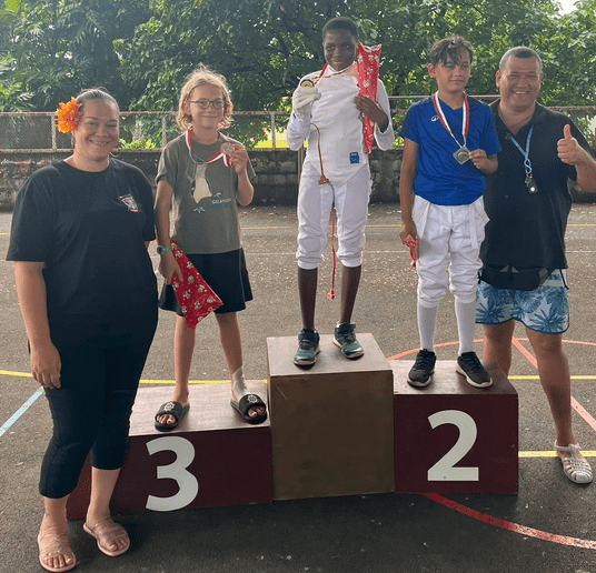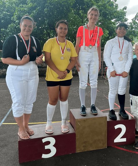 Les différents clubs de la fédération étaient présents : Les Fines Lames de Arue, le cercle d’Escrime de Pamatai, les Escrimeurs de Tahiti (Papeete) et le Mareta Pito Escrime Club de Mahina, dirigé par Mahana VAEA qui a parfaitement bien organisé cet événement. Les résultats