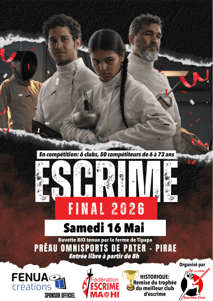 Le rendez-vous du samedi 16 mai à la salle de Pirae, au Oé No Pirae Escrime Club, est le moment clef, après 3 compétitions de la saison 2025/2026. C’est le plus grand rassemblement de l’année dédié à toute la communauté des escrimeurs de Polynésie Française !